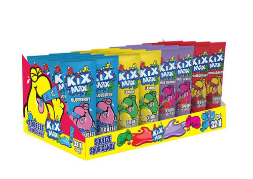ژله کیکس مکس تیوپی با طعم میوه های ترش باکس ۳۲ عددی kixmax