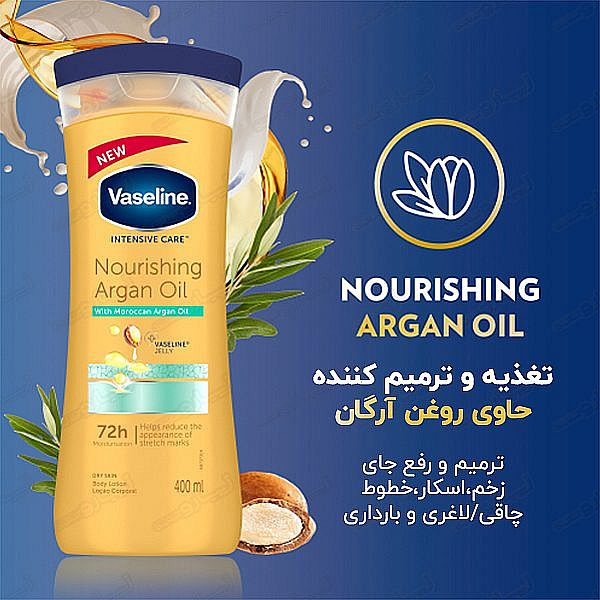 لوسیون بدن وازلین مدل NOURISHING ARGAN OIL پوست را تسکین میدهد و آرام میکند و آن را آبرسانی میکند. با فرمولاسیون غنی شده از عصاره 100% خالص آرگان که با خواص ترمیم و رفع جای زخم،اسکار،خطوط چاقی/لاغری و بارداری شناخته شده است. لوسیون بدن وازلین مدل NOURISHING ARGAN OIL تا سه لایه از پوست نفوذ میکند و پوست خشک شما را از عمق لایههای درونی بهبود میبخشد و آن را به پوستی صاف و سالم که دوست دارید باز می گرداند. با میکرو قطرات ژله وازلین که رطوبت را در خود ذخیره میکند و پوست ...