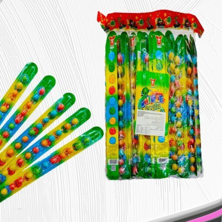 آدامس خط کشی محصول کشور چین 12 عدد آدامس توپی روی یک خط کش 25 سانتی