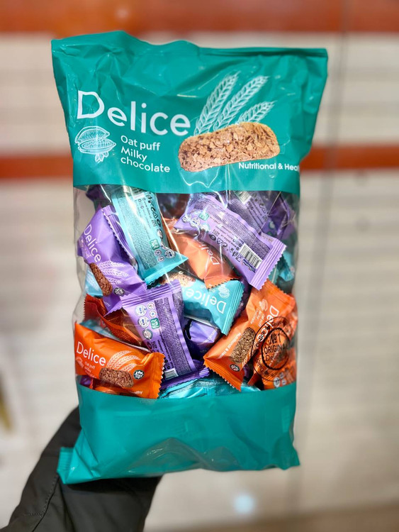 شکلات پذیرایی دلیس delice oat puff dark chocolate حاوی غلات 500 گرم