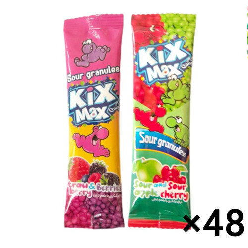کیکس مکس ترشک توپی با طعم انواع توت و سیب و گیلاس مدل ساشه ای باکس 48 عددی KIXMAX