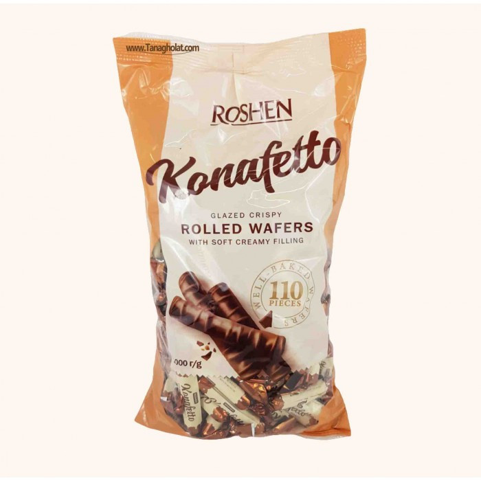 شکلات کانافتو تلخ روشن (Roshen Konafetto Nero) یک میانوعده محبوب و با کیفیت از برند معتبر اوکراینی Roshen است. این محصول در بستهبندی ۱ کیلوگرمی عرضه میشود و شامل حدود ۱۱۰ عدد ویفر رولی با مغز فندق و پوشش شکلات تلخ است. هر ویفر بهصورت جداگانه بستهبندی شده که برای پذیرایی و مصرف روزانه مناسب است.