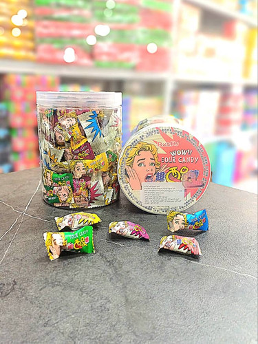 آبنبات بشکه ای ترش برند super sour با طعم میکس میوه 12 تایی
